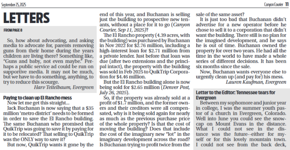 • Related: Paying to clean up El Rancho mess (Canyon Courier, 9/25/2025, p.11)
